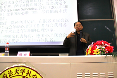 论坛在全场师生热烈掌声中开始。张侃教授首先向师生们介绍了中国心理学会和国际心理学大会的召开情况,以及心理学的学科发展前沿和学科群建设情况。随后,张侃教授运用统计学和心理学知识,讲述了中国人的心理健康与心理和谐发展中存在的问题以及这些问题存在的原因。结合心理学性爱直播