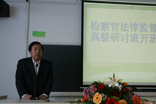 党委副书记兼副校长冯世勇代表学校致辞,对广东省珠海市人民检察院检察官参加研讨班表示热烈欢迎,对研讨班的顺利开班表示祝贺。他说,举办检察官高级研讨班是贯彻落实2009年7月7日全国检察教育培训工作会议精神,贯彻落实《最高人民检察院关于2009年至2012年大规模推进全国检察教育培训实施意见》的文件精神。致辞中,他向学员介绍了学校的发展历史及我校师资队伍、学科建设、社会服务等方面所具有的优势和影响,以及建校以来我校参与立法工作为国家做出的突出贡献和在国际性爱直播