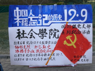 系列纪念活动从12月6日起,以大型签名活动、革命爱国歌曲大赛、访“一二·九”运动纪念亭活动等丰富多彩的形式进行。其他活动将陆续开展。 |